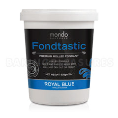 This Mondo Fondtastic Premium Rolled Fondant Royal blue is a premium quality, non stick, pliable fondant icing that is easy to use and produces a high quality finish. It has a tasty vanilla flavour . Comes in a 908b (2lb) tub.