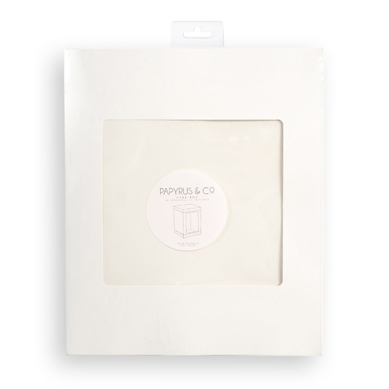 This Papyrus Square Scalloped Tall Cake Box White is great for holding and presenting your cakes. Features a clear window panel, strategically positioned to showcase your delectable creation. Allow the beauty of your cake to captivate with this stylish and functional packaging solution. Made from premium-quality printed milk board, this cake box combines functionality and aesthetics to make your cake truly stand out. Comes flat packed.