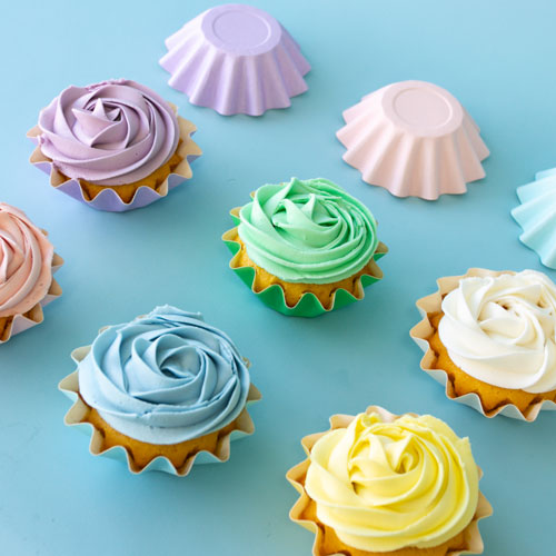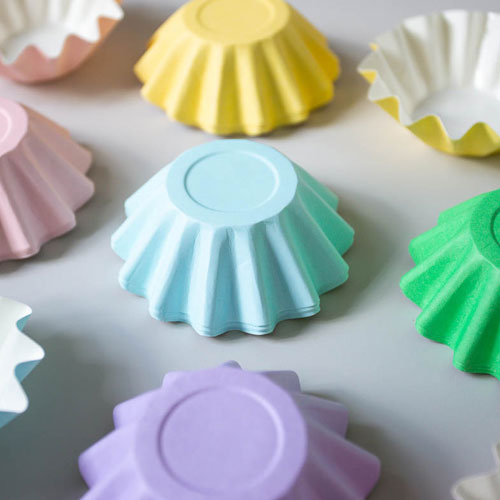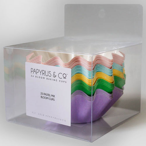 These high quality paster bloom baking cups by Papyrus are made from high quality paper. Includes a mix of pastel green, pastel blue, pastel lilac, pastel pink and pasterl yellow bloom baking cups. Each pastel bloom baking cups measures approximately 44m base 32mm height. Comes in a pack of 25 pieces.