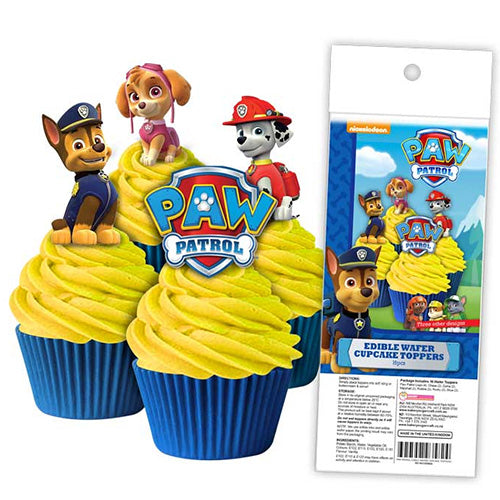 This Paw Patrol Edible Wafer Cupcake Toppers pack includes 16 Paw Patrol Wafer Cupcake Toppers (4 x Paw Patrol Logo, 2 x Chase, 2 x Zuma, 2 x Marshall, 2 x Rubbie, 2 x Rocky & 2 x Skye). These toppers are made out of quality and natural edible wafer paper (dried potato starch & vegetable oil). Great for decorating cupcakes. Paw Patrol cupcake toppers measures approximately 5cm in height.