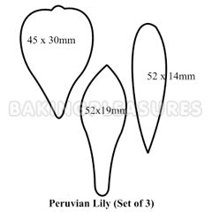 Make beautiful life like peruvian lily using this 3 piece Peruvian Lily Flower Cutter set. Peruvian cutters measures as follows 45x30mm, 52x19mm & 52x14mm. Made out of stainless steel. Made in Australia.