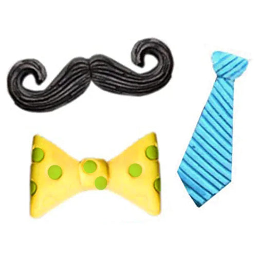 This Petite Moustache, Bows, Ties Silicone Mould allows you to easily mould small moustache, bows and ties. It is made out of high quality food grade silicone. It features a nice balance between being firm enough to achieve detailed designs yet flexible for easy removal without damage. Great for fondant, gum paste, clay, chocolate and more.
