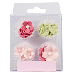 These beautiful pink flowers & leaves edible cupcake toppers are great for decorating cakes, cupcakes and desserts. There are 3 different pink flower design and 1 leaf (4 of each topper). Flowers measure between 15 & 25mm.