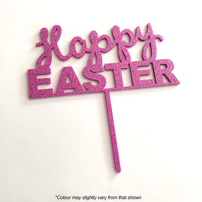 Pink Glitter HAPPY EASTER Acrylic Cake Topper