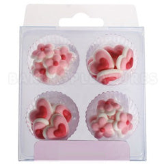 Pink Hearts & Flowers Edible Cupcake Toppers 24pcs