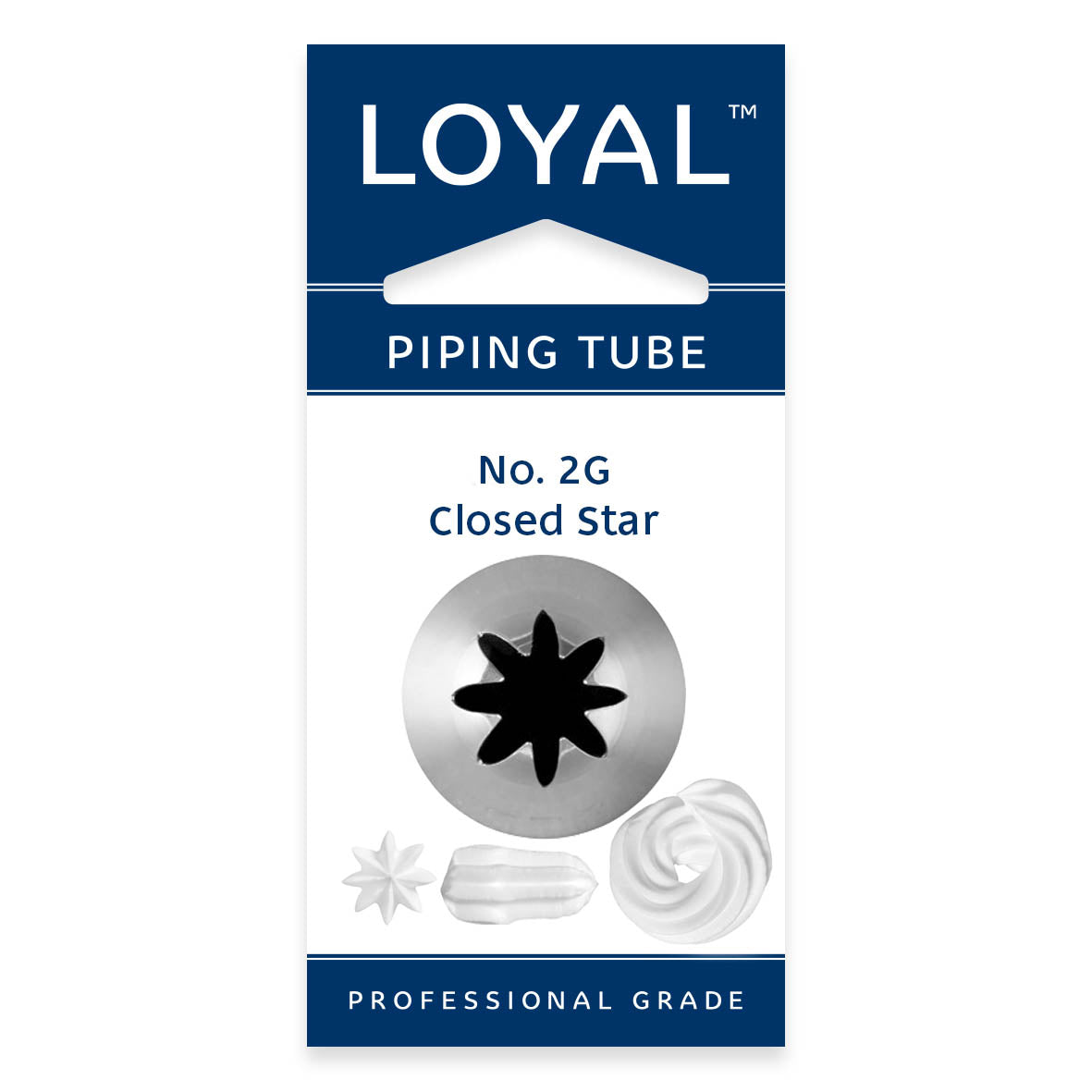 Create stunning and intricate designs with the LOYAL Closed Star 2G Medium piping tip. Ideal for deeply groover shells, stars and fleuer-de-lis.