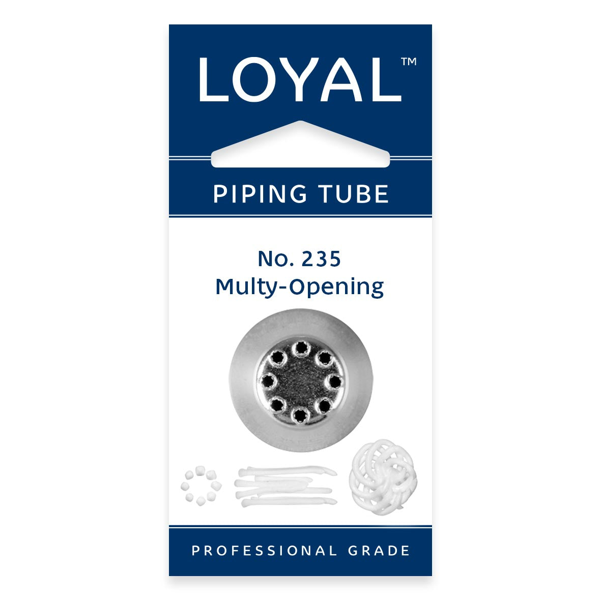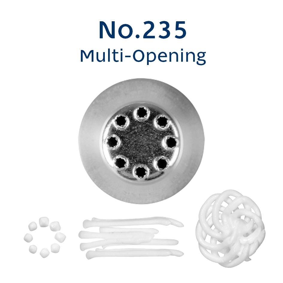 Elevate your decorating skills with a LOYAL Multi-Opening No.235 Standard piping tip, a must have for creative bakers! This tip is ideal for a range of intricate designs including piping grass, fur, hair, strings, beads and stunning flower centres.