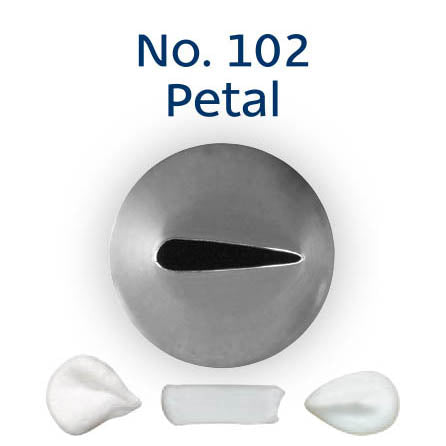 The LOYAL Petal Piping Tip No.102 Standard is a must-have for creating beautiful flowers across your creations. Perfect for piping a variety of roses, carnations, daisies, pansies plus ruffles, drapes, swags and bows.
