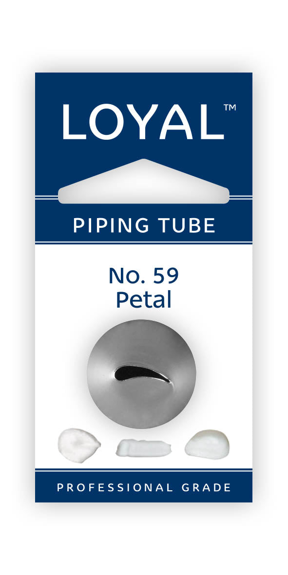 The LOYAL Petal Piping Tip No.59 Standard is a must-have for creating beautiful flowers across your creations. Perfect for piping a variety of roses, carnations, daisies, pansies plus ruffles, drapes, swags and bows.