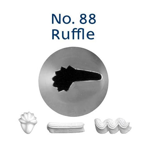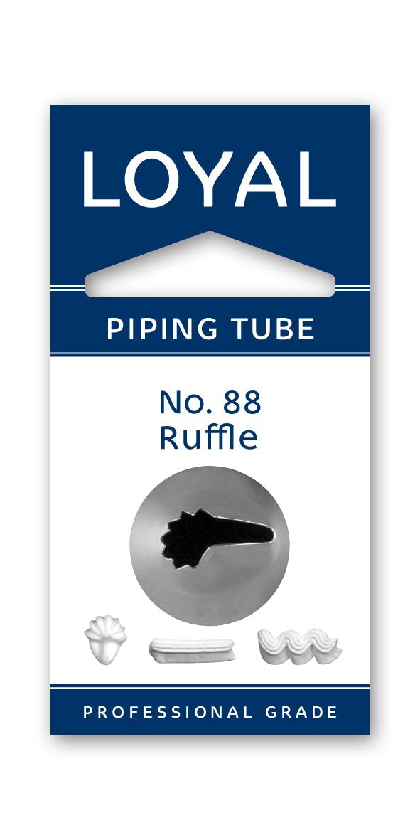Use a LOYAL Ruffle No.88 Standard tip for piping ruffles and creating textures across your creations. Ideal for piping garlands, curves and zig-zag boarders.