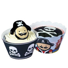 These pirate cupcake wrappers are great for dressing up your cupcakes for pirate themed parties. This set consists of 12 cupcake wrappers with 2 different designs (6 skull and bone & 6 pirate cupcake wrappers). Fits standard size cupcakes. These pirate cupcake wrappers are for decorative purposes only and not to be baked in.