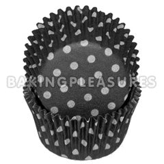 Cute polka dot black baking cups sold in packs of approximately 36 pieces. Each baking cup measures approximately 1.1/4" wall x 2" base. Made from high-quality Swedish greaseproof paper. These are great for cupcakes and also works well for muffins. Great for baby showers & birthday parties.