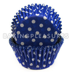 Cute polka dot blue baking cups. Each baking cup measures approximately 1.1/4" wall x 2" base. These are great for cupcakes and also works well for muffins. Great for baby showers & birthday parties. There are approximately 32-36pcs per pack.
