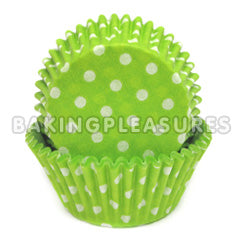 Cute polka dot lime baking cups sold in packs of approximately 36pcs. Each baking cup measures approximately 1.1/4" wall x 2" base. These are great for cupcakes and also works well for muffins. Great for birthdays and baby showers.