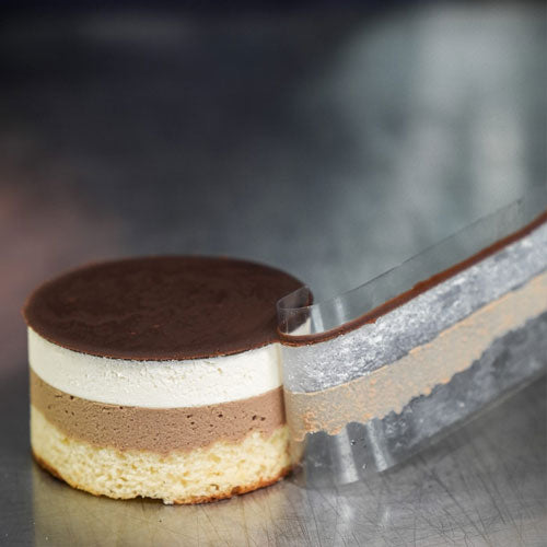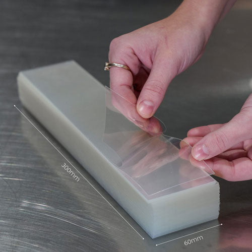 These Precut Clear Acetate Cake Collar Strips 6cm x 30cm 250pcs are used by pastry chefs and chocolatiers to create perfect layers in all kinds of mousse, chocolate and cake-filled desserts!