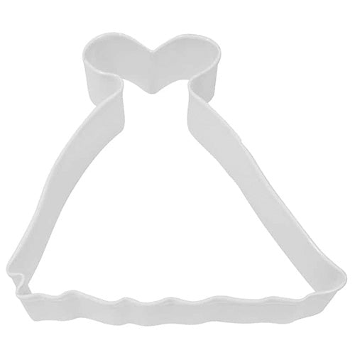 This princess gown white resin cookie cutter is great for cutting princess gown white shapes for cookies, cake decorating & craft. They are coated in a special white poly-resin coating which makes them attractive, dishwasher safe, and adds a layer of protection from scratches, chips & rust. Great for Wedding themed cookies. This princess gown white resin cookie cutter measures approximately 10cm (4").