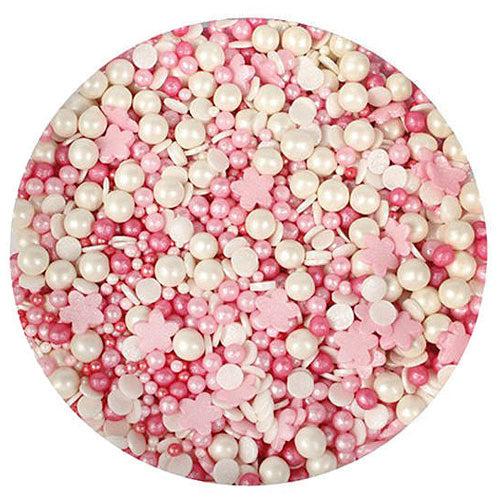 sprinkles are great for adding colour and texture to your cakes, cupcakes and desserts. A beautiful combination of white and pink colour sprinkles in a variety of shapes & sizes.