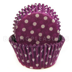 These purple polka dot mini baking cups are great for mini cupcakes, muffins or as holders for candy, nuts and snacks. They are made out of quality Swedish greaseproof paper. Measures approximately 31mm base and 20mm high. Each pack contains approximately 68 purple polka dot mini baking cups.