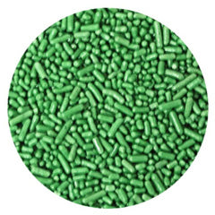 These Pearlized Green Jimmies by Quality Sprinkles are great for decorating cupcakes, cakes, cookies, ice cream, desserts and more. Made using natural colours and ingredients. As with most natural sprinkles, colour shades might not be as intense as non natural sprinkles. Comes in a convenient 63g bottle.This product is:
