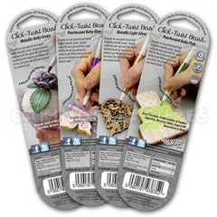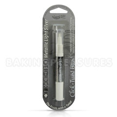 This Edible Click Twist Brush Metallic Light Silver by Rainbow Dust is a convenient paint brush pre-filled with Rainbow Dust popular metallic food paint. To use simply twist the end cap of the brush until the paint fills the brush tip. When not in use, simply wipe excess paint from tip of brush and place the cap back over the brush until next time. Quick and easy. No mess no fuss.
