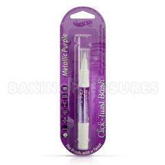 This Edible Click Twist Brush Metallic Purple by Rainbow Dust is a convenient paint brush pre-filled with Rainbow Dust popular metallic food paint. To use simply twist the end cap of the brush until the paint fills the brush tip. When not in use, simply wipe excess paint from tip of brush and place the cap back over the brush until next time. Quick and easy. No mess no fuss.