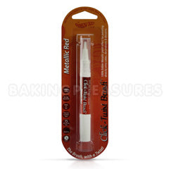 This Edible Click Twist Brush Metallic Red by Rainbow Dust is a convenient paint brush pre-filled with Rainbow Dust popular metallic food paint. To use simply twist the end cap of the brush until the paint fills the brush tip. When not in use, simply wipe excess paint from tip of brush and place the cap back over the brush until next time. Quick and easy. No mess no fuss.