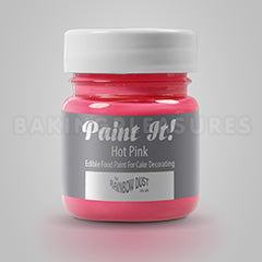 This Rainbow Dust Edible Paint It Hot Pink is an easy to use opaque paint for cake decorating. It can be applied straight from the container using a brush or natural sponge for large areas. Suitable for use on sugarpaste, flowerpaste and other modelling pastes. Use just like a traditional paint! Comes in a 25ml pot.