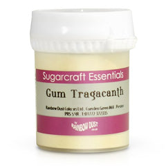 This Gum Tragacanth by Rainbow Dust is similar to tylo powder but is stronger and is used for making flower paste, pastillage and mexican paste that will harden upon drying. It acts as a hardener when kneaded into sugarpaste allowing cake decorators to create figures and models easily. As the sugarpaste dries it becomes hard and sets into position. Gum Tragacanth is a natural gum obtained from the sap of a plant in the middle east. from Comes in a 25g container.