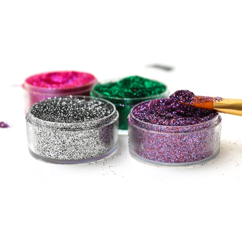 This Rolkem Crystal Dust Steel is a non toxic approved food additive, food touch approved, high sparkle crystal dusting powder. It is great for adding a sparkly finish to your sugar art creations. Give your fondant or gum paste a sparkly diamond shine similiar to glitter. Comes in a 10ml pot.
