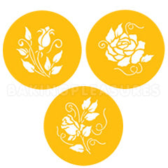 This Rose Stencil Set by Designer Stencils is a highly detailed stencil made out of heavy duty plastic for repeat use and cut using precision lasers. This set includes three diffrent rose design stencil. Stencils are sized to fit within a 2.75 inch circle which makes it perfect for 3 inches cookies. Great for decorating Valentines Day themed cookies, cakes, cupcakes and desserts. This stencil can be used with airbrush, dust, buttercream and royal icing. Made out of high quality 10 mil food grade plastic. Instructions included.