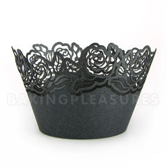 Rose Pearl Gunmetal Black Lace Cupcake Wrappers 12pcs