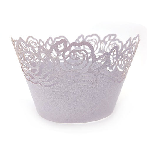 Rose Pearl Light Purple Grey Lace Cupcake Wrappers 12pcs