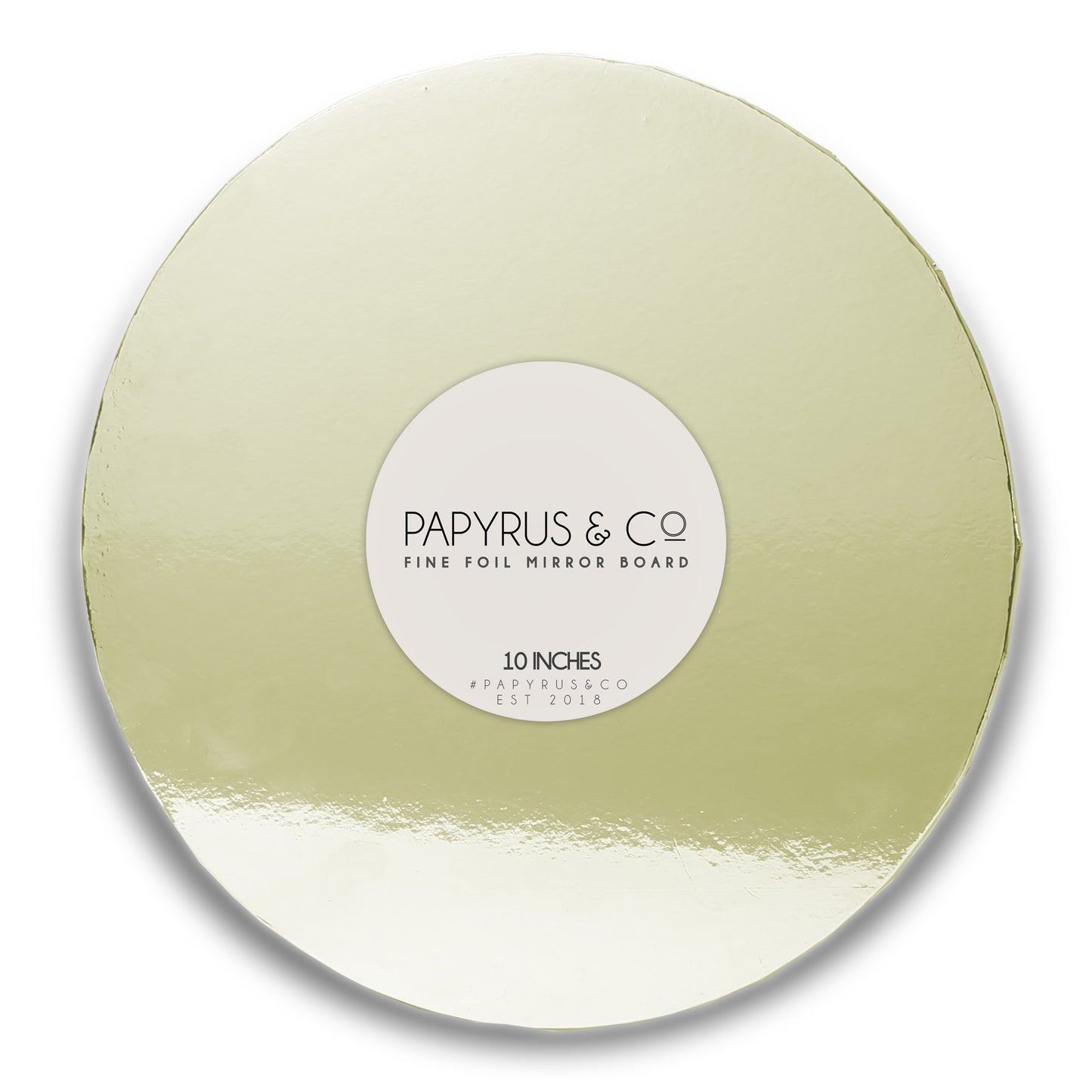 This Round Gold Mirror Masonite Cake Board 8 Inch by Papyrus is a masonite cake board covered in high quality gold foil creating a glossy mirror effect. Great way to present your food, cakes, desserts and have them elegantly reflected onto the board. Made out of 5mm thick masonite providing a strong base. Cake board measures 8 inches (25.4cm) in diameter. Each gold mirror cake board is individually shrink wrapped.