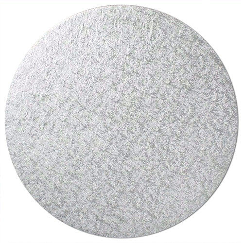 These round 8 inch silver masonite cake boards are made out of wood and are very sturdy and do not bend. They are covered securely in embossed silver foil with flowery patterns and are commercial food-grade. Measure to fit 8 inch cakes and has a 5mm thickness and are extremely strong. Great for holding heavy cakes or when you need a stacked wedding cake. Also commonly used as a base for hampers or gifts. Just wrap at the top with cellophane.