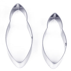 This Rubrum Lily petal flower cutter set is great for cutting out Rubrum Lily flower petals out of gum paste, sugar paste, rolled fondant, marzipan and craft clays. It includes 2 stainless steel Rubrum Lily flower petal cutters in sizes: