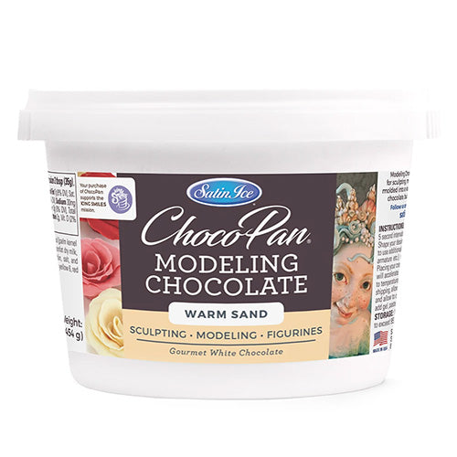 This Satin Ice ChocoPan Modeling Chocolate Warm Sand is a professional-grade sculpting medium, with superior workability and a premium chocolate taste. Designed with the cake artist in mind, ChocoPan Modeling Chocolate is firm yet malleable, allowing for seamless blending and smoothing, which makes it ideal for sculpted cakes, modelling figurines, and creating toppers. Great for modelling, sculpting & shaping. Sets firm but remains pliable and can be reworked when warm. Can be mixed together to create different shades or colour using gel, paste or oil based food colouring. Comes in a 454g tub.