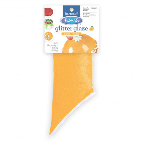 This Satin Ice Glitter Glaze Mango is great for adding a sparkly finish to desserts, cakes, doughnuts, cookies and so much more! With a bold yellow colour and delicious mango flavour, this ready-to-use glaze will transform any sweet treat. Comes in a convenient easy 250g squeeze pouch for drips and piping or can be used as a dip or to cover entire cakes. Simply cut the corner of the bag and squeeze!