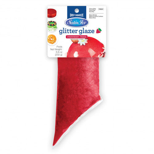 This Satin Ice Glitter Glaze Strawberry is great for adding a sparkly finish to desserts, cakes, doughnuts, cookies and so much more! With a bold red colour and delicious strawberry flavour, this ready-to-use glaze will transform any sweet treat. Comes in a convenient easy 250g squeeze pouch for drips and piping or can be used as a dip or to cover entire cakes. Simply cut the corner of the bag and squeeze!