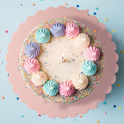 This pastel pink scallop 10 inch cake board by Papyrus & Co is great for making your cake the centerpiece of any celebration. Created from high-quality 3mm compressed board, this cake board from Papyrus ensures your cake not only stands out but also stands strong. Features a clean, modern design that accentuates the elegance of your cake. The crisp pastel pink surface provides a neutral backdrop, allowing your cake's intricate details and colors to shine. Measures 10 inch (25.4cm) in diameter and 3mm thick.