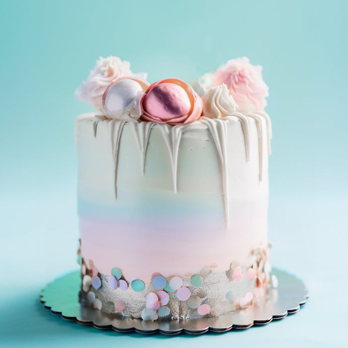 This silver scallop 10 inch cake board by Papyrus & Co is great for making your cake the centerpiece of any celebration. Created from high-quality 3mm compressed board, this cake board from Papyrus ensures your cake not only stands out but also stands strong. Features a clean, modern design that accentuates the elegance of your cake. The crisp silver surface provides a neutral backdrop, allowing your cake's intricate details and colors to shine. Measures 10 inch in diameter and 3mm thick.