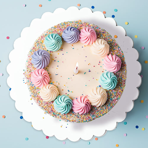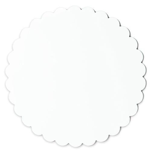 This white scallop 10 inch cake board by Papyrus & Co is great for making your cake the centerpiece of any celebration. Created from high-quality 3mm compressed board, this cake board from Papyrus ensures your cake not only stands out but also stands strong. Features a clean, modern design that accentuates the elegance of your cake. The crisp white surface provides a neutral backdrop, allowing your cake's intricate details and colors to shine. Measures 10 inch (25.4cm) in diameter and 3mm thick.