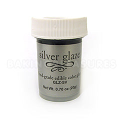 This ready to use edible silver glaze is a pre mixed silver lustre dust food grade edible glaze. It comes ready to use out of the bottle and saves you the hassle of having to mix luster dust with alcohol for your painting. Specially formulated to work with fondant this edible silver glaze is great for highlighting & glazing small areas. For best results, apply two or more coats allowing 30 minutes to dry between coats. Always use a clean brush for glazing to avoid contamination. Comes in a 20g bottle.