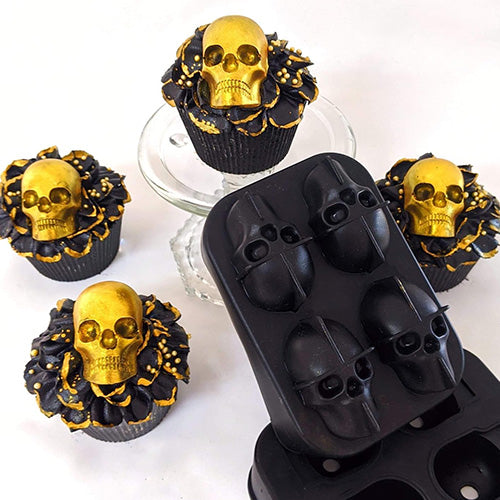 This Small 3d Skull Silicone Mould is great for moulding detailed 3d skull shapes. Contains 4 cavities.