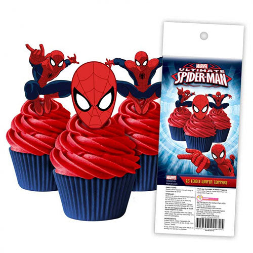 This Spiderman Edible Wafer Toppers pack includes 16 Spiderman Wafer Cupcake Toppers. These toppers are made out of quality and natural edible wafer paper (dried potato starch & vegetable oil). Great for decorating cupcakes.