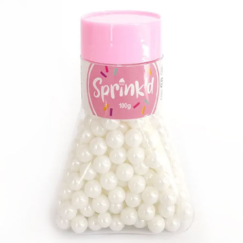 These Sprinkd 8mm Sugar Pearl White Sprinkles 100g features an assortment of edible sprinkles great for decorating your cakes, cupcakes and desserts.