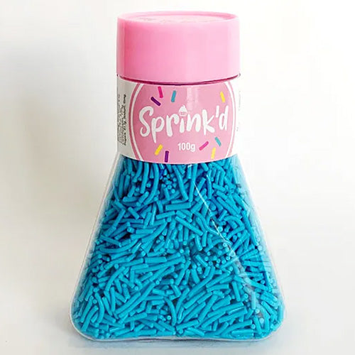 These blue jimmies by Sprinkd are blue cylinder shape sprinkles great for decorating cakes, cupcakes and desserts.Ā