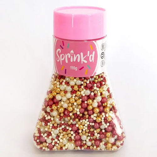 This Sprinkd Bordeux Sprinkles 110g features an assortment of edible sprinkles great for decorating your cakes, cupcakes and desserts. Halal, kosher and gluten free.