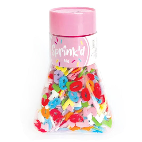 This Mixed Number Sprinkle Mix by Sprinkd includes a mix of numbers in an assortment of rainbow colours. Great for decorating cakes, cupcakes and desserts. It is packed conveniently in a 80g wide mouth jar for easy access. Measurement for number '0' is approximately 0.7cm top to bottom.