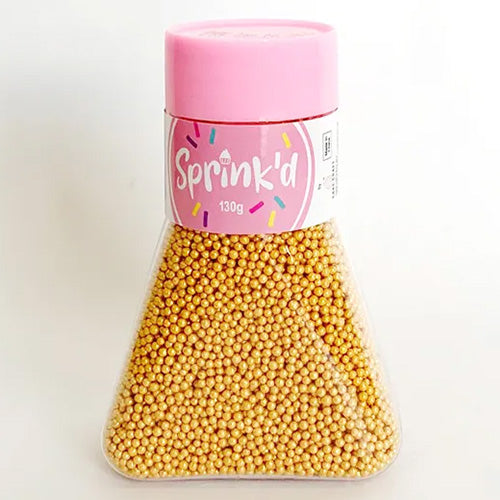 These nonpareils gold by Sprinkd are small gold sugar ball sprinkles great for decorating your cakes, cupcakes and desserts. Each sugar ball measures approximately 2mm in size.Ā