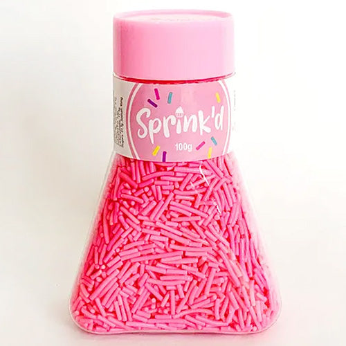 These pink jimmies by Sprinkd are pink cylinder shape sprinkles great for decorating cakes, cupcakes and desserts.Ā